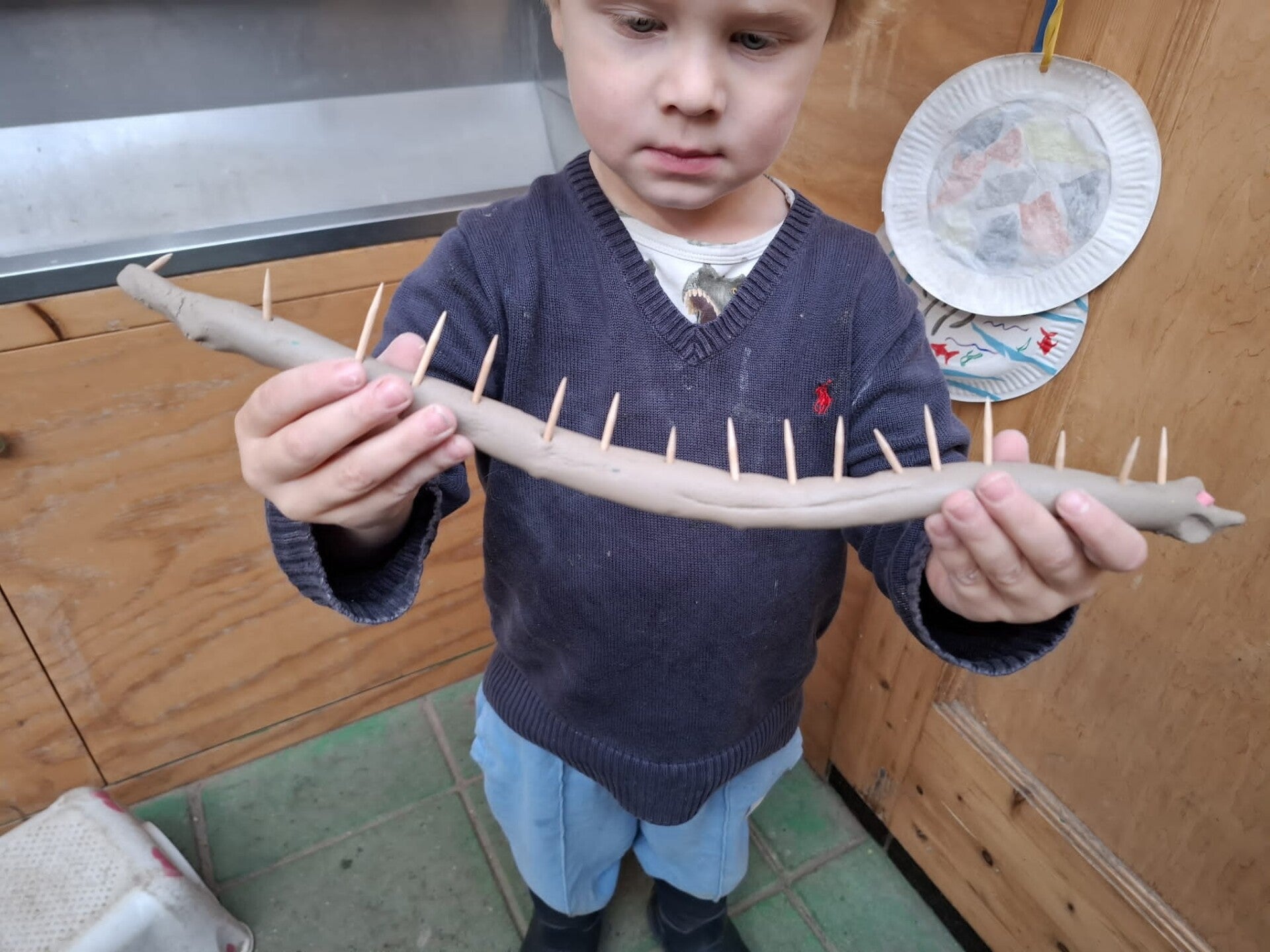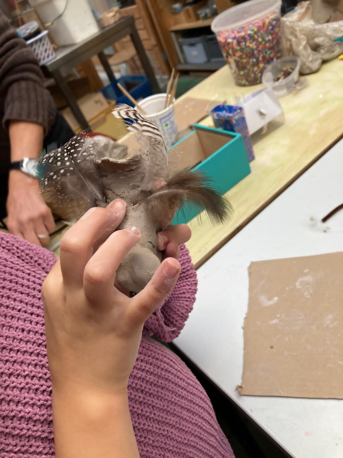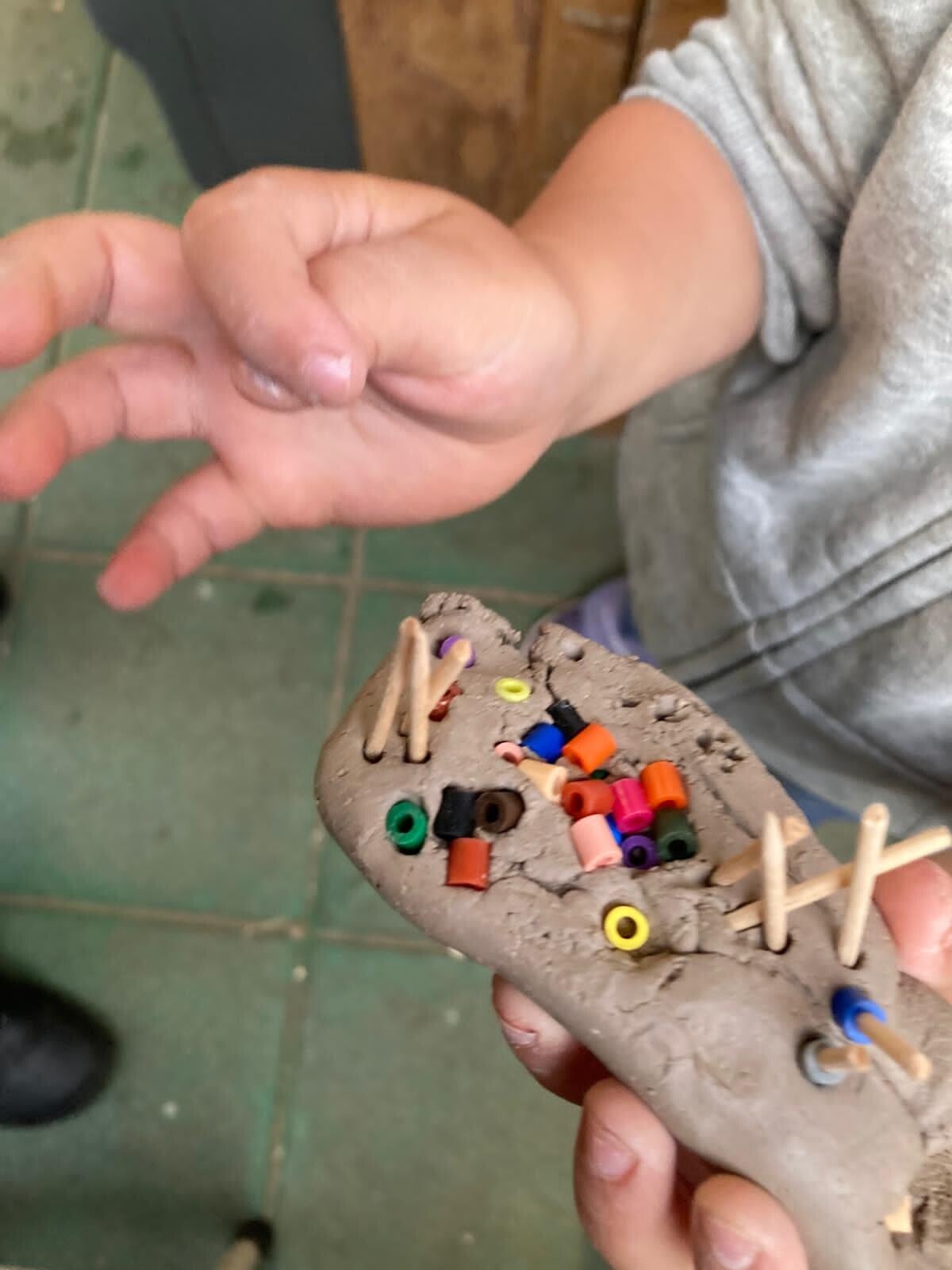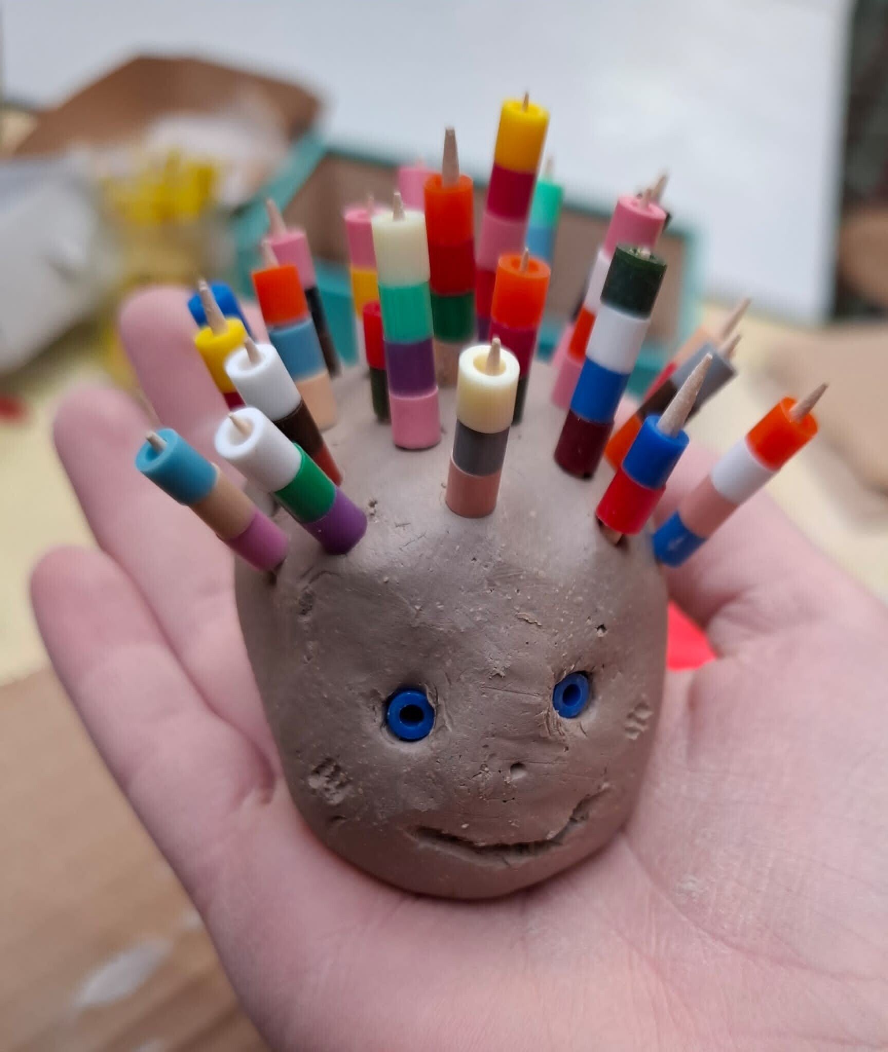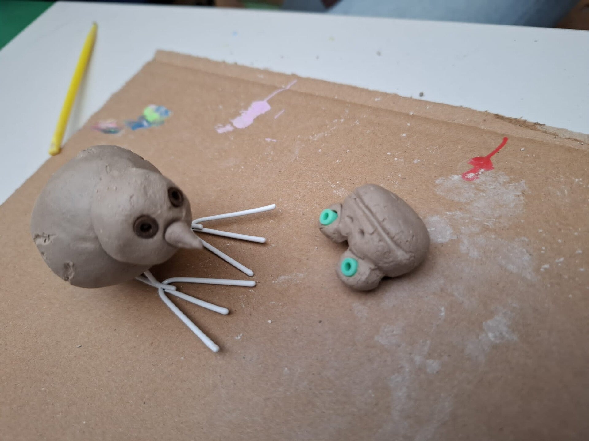 27 augustus: De vakantie is voorbij, volle knutseltafel, tegeltjes beschilderen met verfstiften.